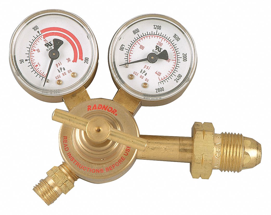 RADNOR Acetylene, Gas Regulator, CGA510, Single Stage, Brass, 0 to 15 psi 31UR35